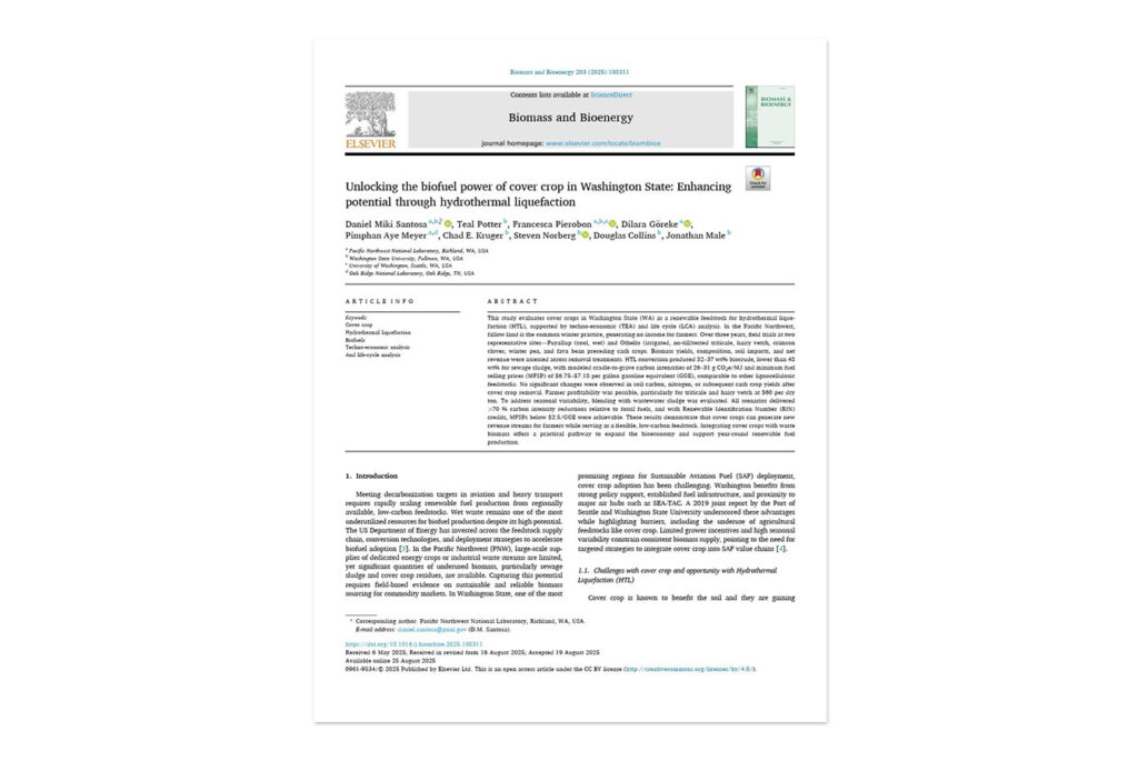 Evaluating Washington cover crops as low-carbon biofuel feedstocks using hydrothermal liquefaction, techno-economic, and life-cycle analysis.