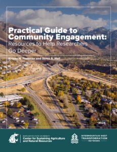 Freeman, K.N, Hall, S.A. 2024. Practical Guide to Community Engagement: Resources to Help Researchers Go Deeper. Center for Sustaining Agriculture and Natural Resources at Washington State University and the Intermountain West Transformation Network.