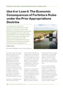 Yoder, J. 2024. Use It or Lose It: The Economic Consequences of Forfeiture Rules Under the Prior Appropriations Doctrine. Technology for Trade Research Highlight. Washington State University.