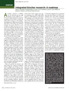 Amonette, J. E., Blanco-Canqui, H., Hassebrook, C., Laird, D. A., Lal, R., Lehmann, J., & Page-Dumroese, D. (2021). Integrated biochar research: A roadmap. Journal of Soil and Water Conservation, 76(1), 24A–29A. https://doi.org/10.2489/jswc.2021.1115A